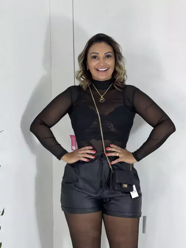 Combine o Body de Tule Close com uma saia midi ou calças de cintura alta para um look sofisticado. Adicione acessórios delicados e um salto alto para completar sua produção!