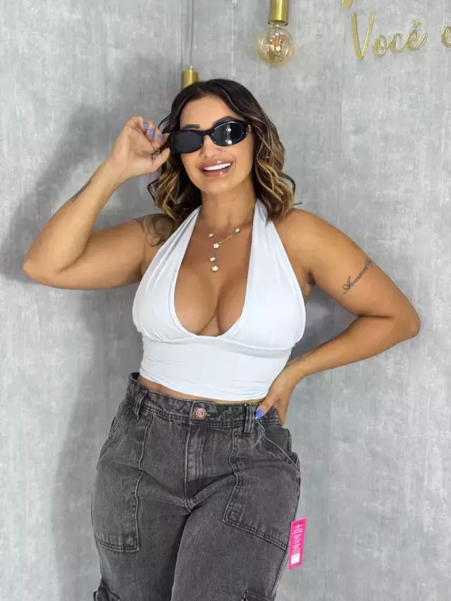 Confeccionado para vestir até o tamanho 44, este cropped valoriza suas curvas com um caimento perfeito, garantindo conforto e estilo para qualquer ocasião. Seu tecido de alta qualidade oferece toque suave e ótimo ajuste ao corpo.
