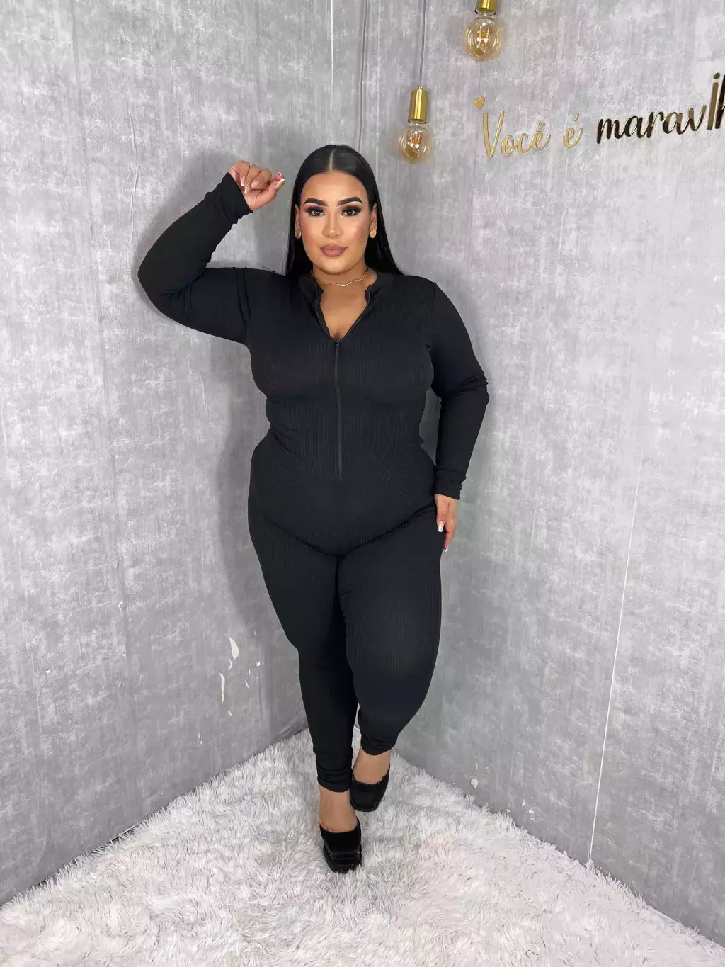 Conheça o Macacão Gringa Plus, a peça ideal para quem busca um visual sofisticado e confortável em qualquer ocasião. Confeccionado com tecido Anarruga, este macacão oferece leveza, durabilidade e um caimento perfeito, sem transparência.