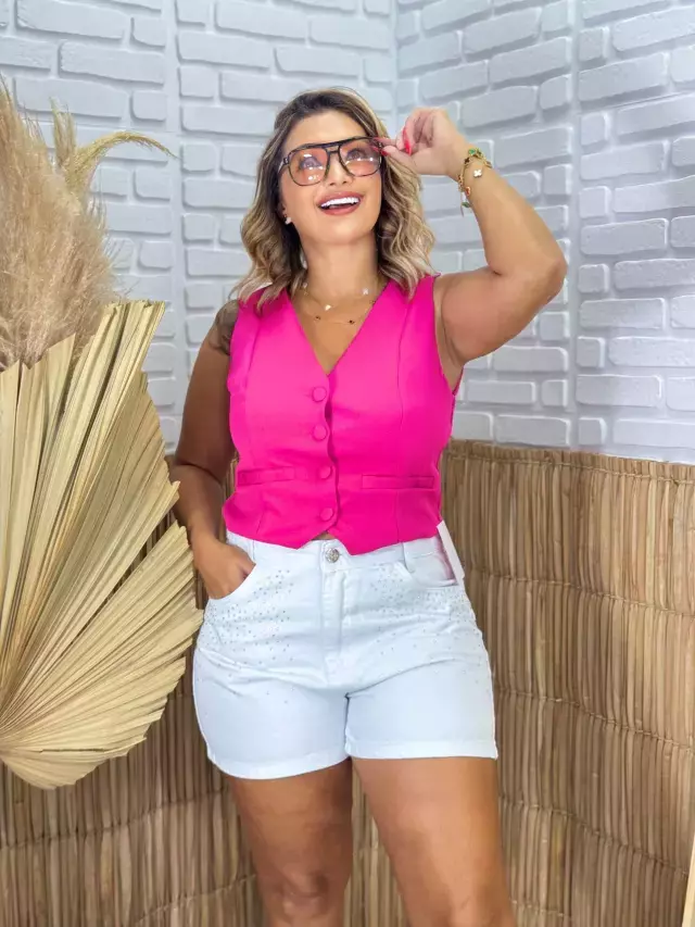 Combine o Short Jeans Brilho com uma blusa leve e sandálias para um visual descontraído, ou use com uma camisa elegante e acessórios sofisticados para um look mais elaborado.