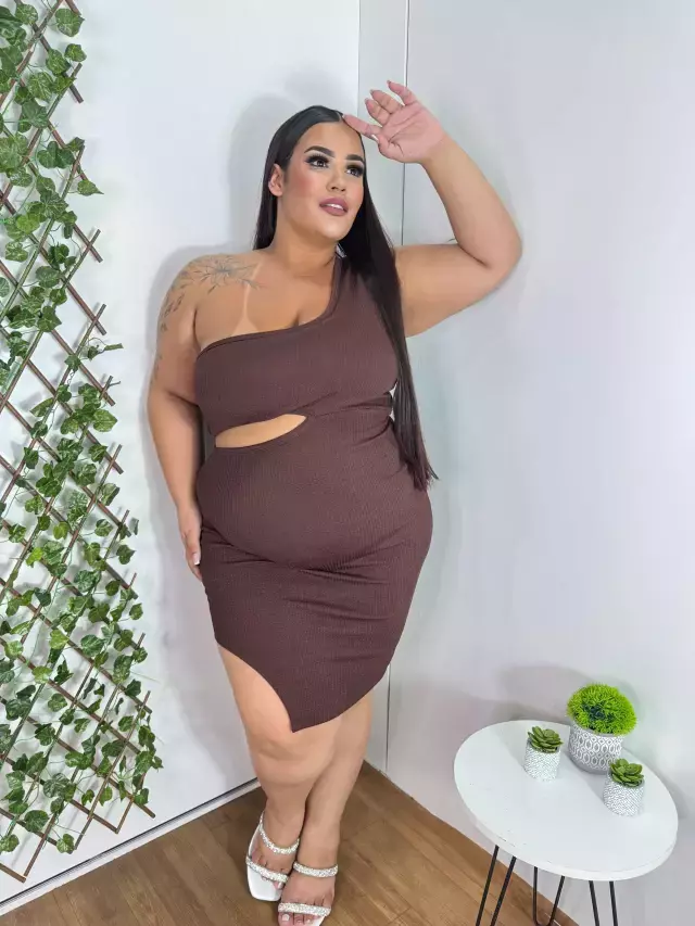 Descubra o Vestido Mídi Manga Única, uma peça irresistível que une elegância e conforto. Com abertura lateral e um design que veste do tamanho 44 ao 52, ele se adapta perfeitamente ao seu corpo.